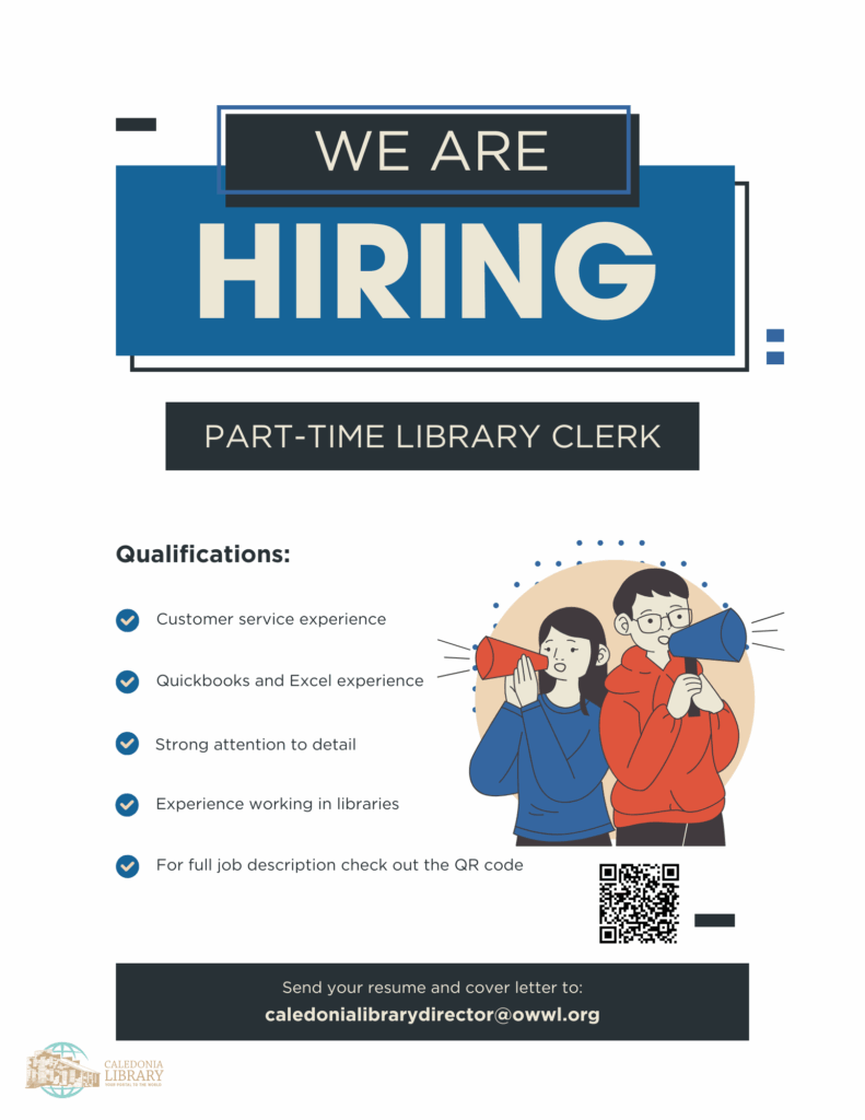 Please send your resume and cover letter to caledonialibrarydirector@owwl.org.